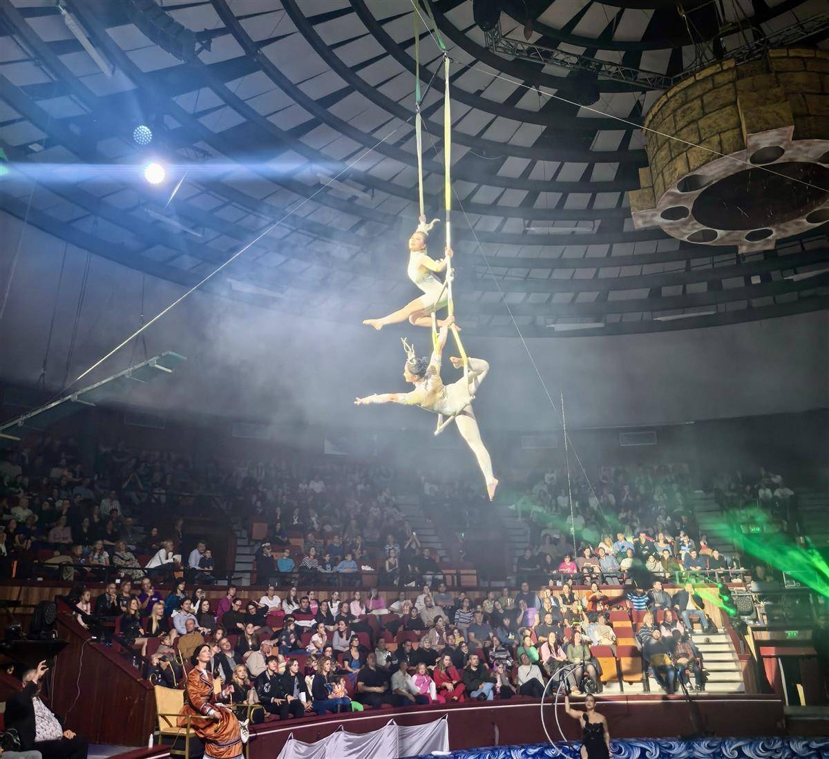 节目《一片羽毛——双人吊子》将演出推向高潮。两位女演员在8米高空被一次次凌空抛起,又通过头、肘、腰等部位一次次精准承接。翻腾与晃动间,力量与柔美完美结合,让现场观众屏息凝神、惊心动魄。