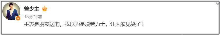 相关争议闹大后直接冲上热搜,凤凰传奇后援会删了这条博文,曾毅发文表示“手表是朋友送的,我以为是块劳力士,让大家见笑了”。从措辞中不难看出他并没有意识到犯的错误,试图用玩笑话淡化这场争议风波,还把锅甩给了朋友。